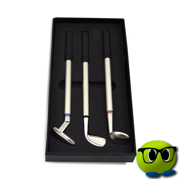 Bleu, rouge et noir…voilà les couleurs que vous aurez avec ces stylos en mini club de golf.