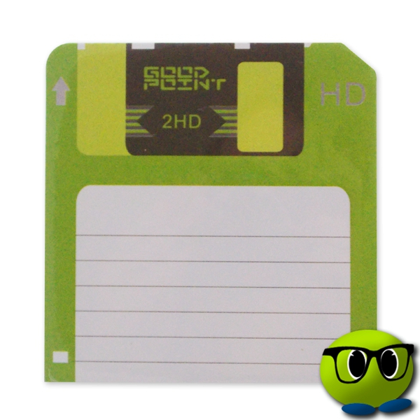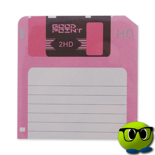 Il a la même taille qu’une véritable disquette et dispose de feuillets rose, vert, noir et bleu.
