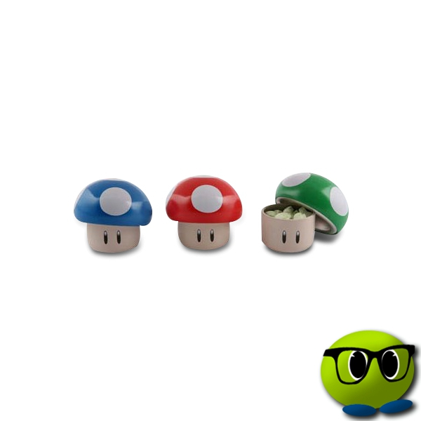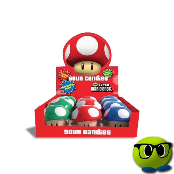 Cette boîte de bonbons contient des bonbons prenant la forme du petit champignon Toad dans Super Mario Bross. Ces bonbons ont un parfum de fruits aléatoire, notamment de cerise, de pomme ou de framboise.