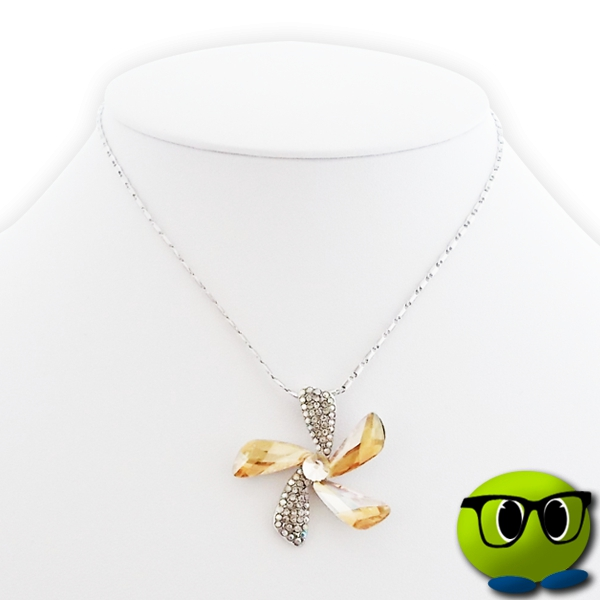 Voici un collier romantique pour offrir ou se faire plaisir. Ce collier a un pendentif merveilleux représentant une fleur couverte de fausses pierres précieuses dorées et de strass lumineux. Ce collier à pendentif fleur est le bijou qu’il vous faut. Il est constitué tout d’abord d’une chaîne fine en maillons rectangulaires argentés. Arrive ensuite le merveilleux pendentif fleur. Il est fait de 6 éléments : 5 pétales et un cœur. 3 des pétales et le cœur de la fleur sont représentés par de belles fausses pierres dorées, tandis que les 2 autres pétales sont totalement couverts de strass brillants. Avec ce collier de 40cm au cou, vous serez étincelante de beauté et surtout ne pourrez passer inaperçu au cours de n’importe quelle soirée.