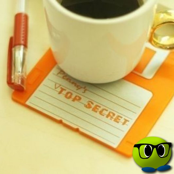 Une moitié de vos dessous de verre disquettes porte l’inscription « TOP SECRET » et l’autre moitié « Hope you enjoy it ! XOXO ».