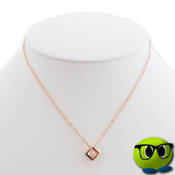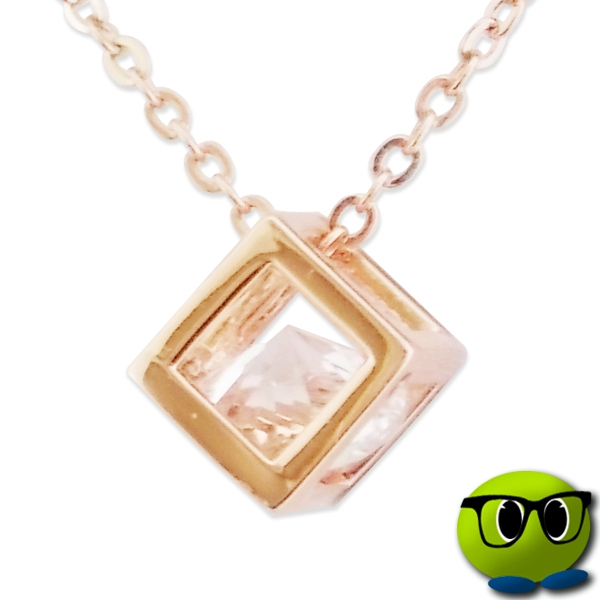 Joli collier à pendentif cube doré et au faux diamant