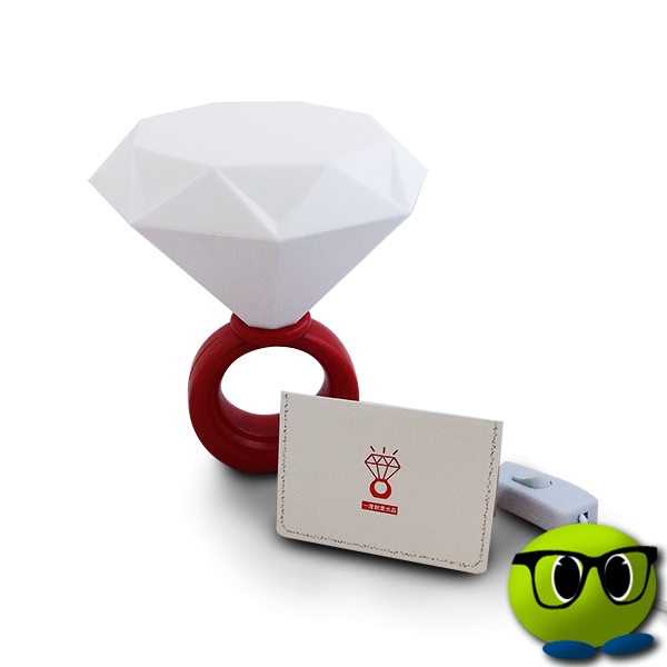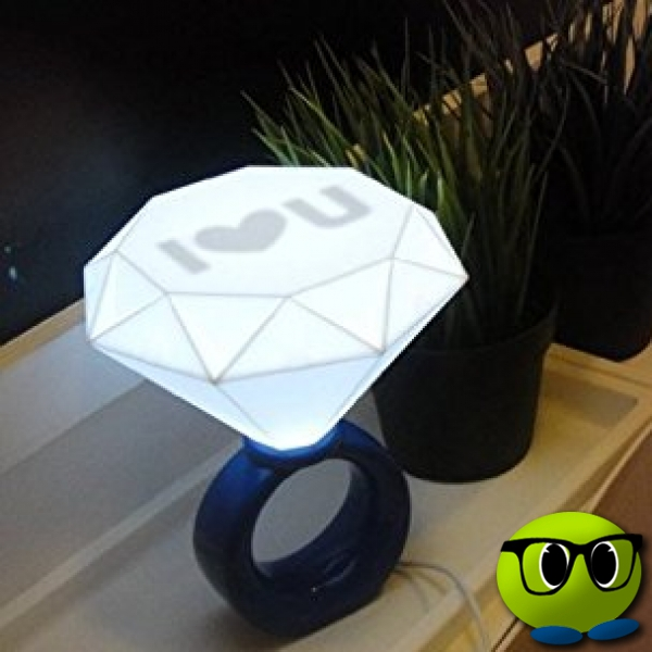 En effet, cette lampe veilleuse a la forme d’une bague avec un gros diamant qui porte l’inscription « I love you ».
