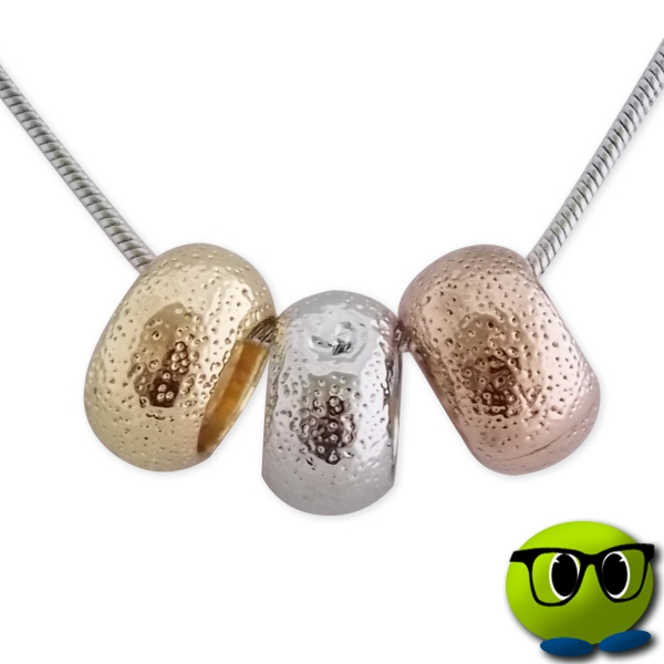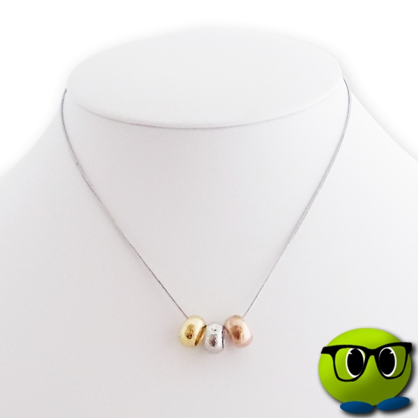 De plus, il est embellit par des pendentifs en 3 anneaux métalliques aux différentes couleurs de l’or : argenté, doré et cuivré.