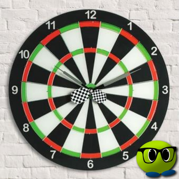 Cette horloge murale est de forme ronde et décorée avec les motifs d’une cible de fléchettes. Les couleurs traditionnelles de la table de jeu sont toutes présentes sur cet accessoire de décoration.
