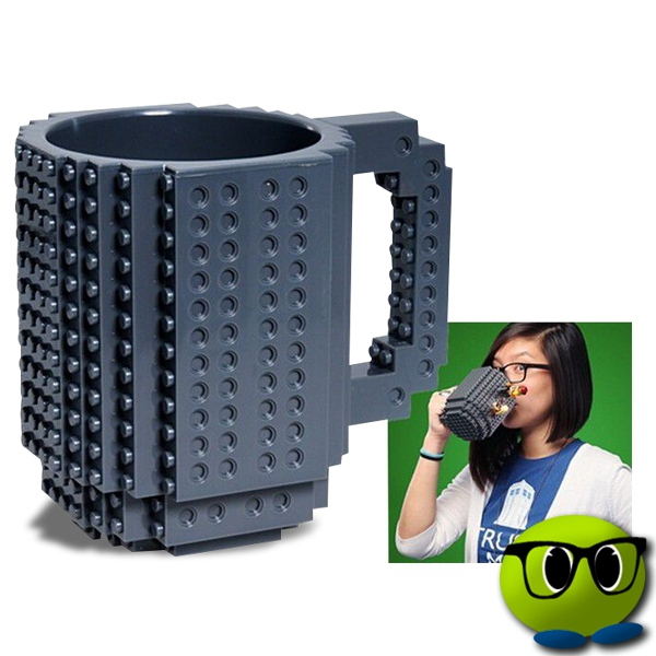 Voici un mug insolite pouvant recevoir des pièces de lego et d’autres jeux encore sur sa paroi externe. En effet, cette paroi est forgée comme étant un support de pièces de jeux de construction.