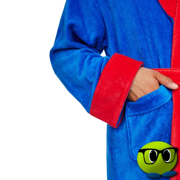Il peut aussi servir de déguisement, car ses couleurs sont celles de Superman : un fond bleu et des détails rouge et jaune. Ce peignoir est disponible en taille adulte uniquement et peut être nettoyé en machine à 33°C.
