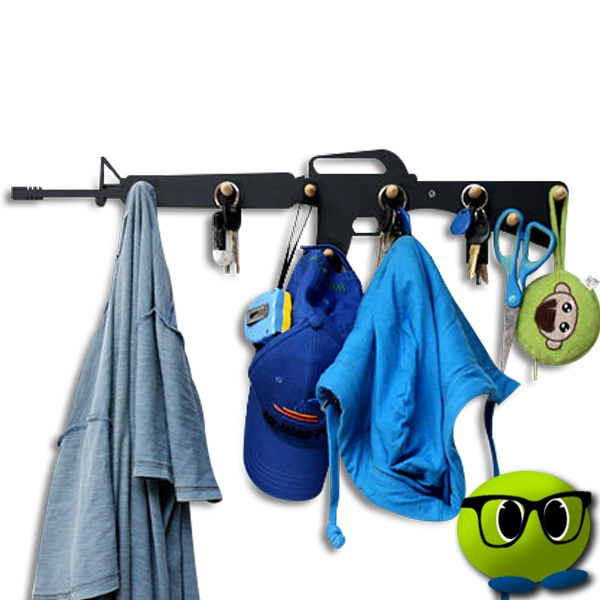 Il a la forme d’un vrai fusil M16 qui est décoré de 9 balles pour servir de crochets.