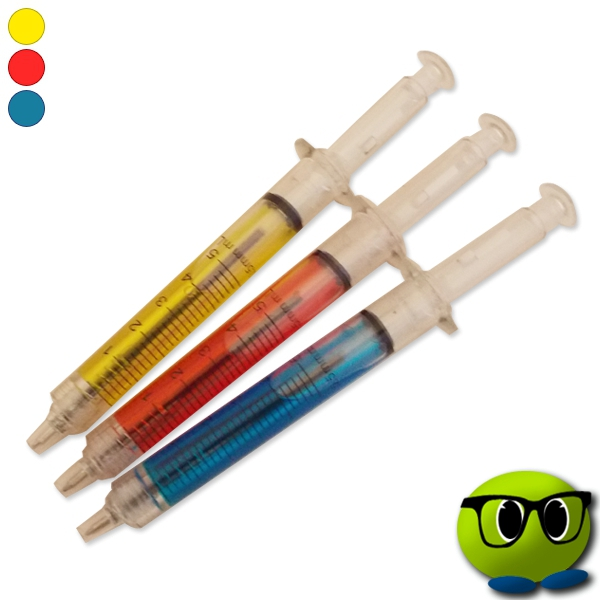 Voici un stylo vraiment fun et original que vous pourrez utiliser pour épater tout le monde. Il prend la forme d’une seringue et contient un fluide coloré avec une graduation de 0 à 5 mL.