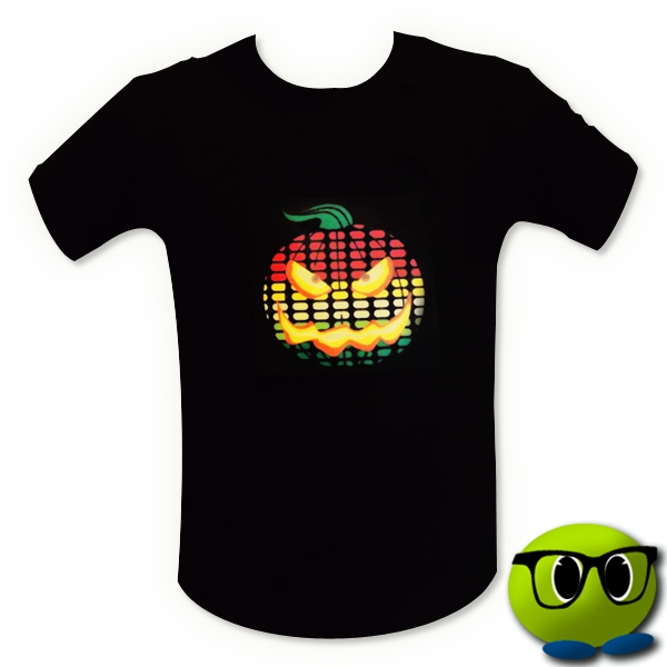 Il s’agit en fait d’un magnifique T-shirt interactif avec comme motif la citrouille d’Halloween.