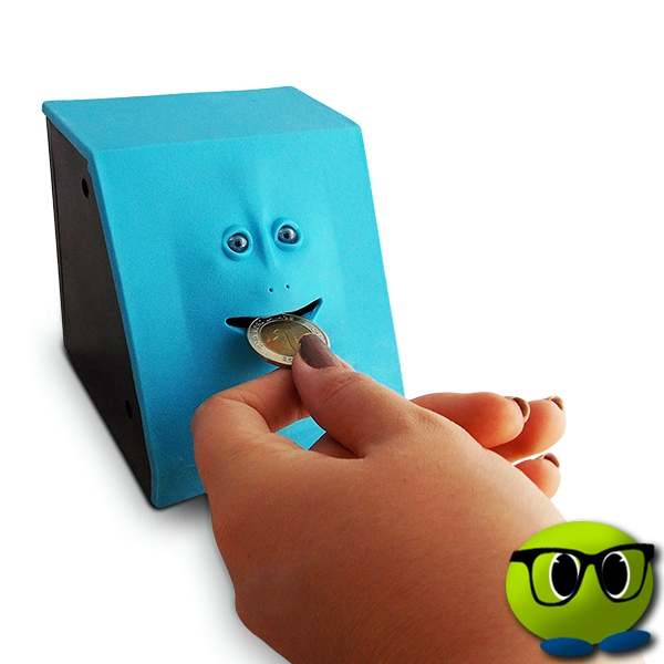 Pour avaler les pièces, elle est équipée d’un capteur de pièces qui l’avertit immédiatement dès que vous placez une pièce devant ses lèvres. Le visage va ainsi ouvrir la bouche puis avaler votre pièce.